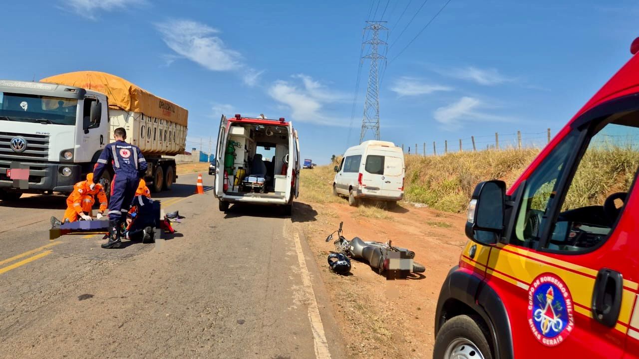 Na manhã desta quinta-feira (21/08), por volta das 10h25, um grave acidente de trânsito foi registrado em Alfenas na perimetral que liga o Distrito Industrial ao Bairro Pinheirinho, deixando um motociclista de 56 anos gravemente ferido. O caso ocorreu quando a motocicleta Honda/CG150 Titan Mix KS, conduzida pela vítima, foi atingida por um automóvel ainda não identificado.