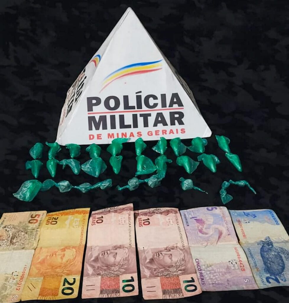 Durante a busca pessoal, os militares encontraram diversas porções de drogas prontas para venda, além de dinheiro em espécie. Segundo a PM, os materiais estavam distribuídos em embalagens típicas do tráfico, reforçando a suspeita de atividades ilícitas no ponto onde o menor atuava.