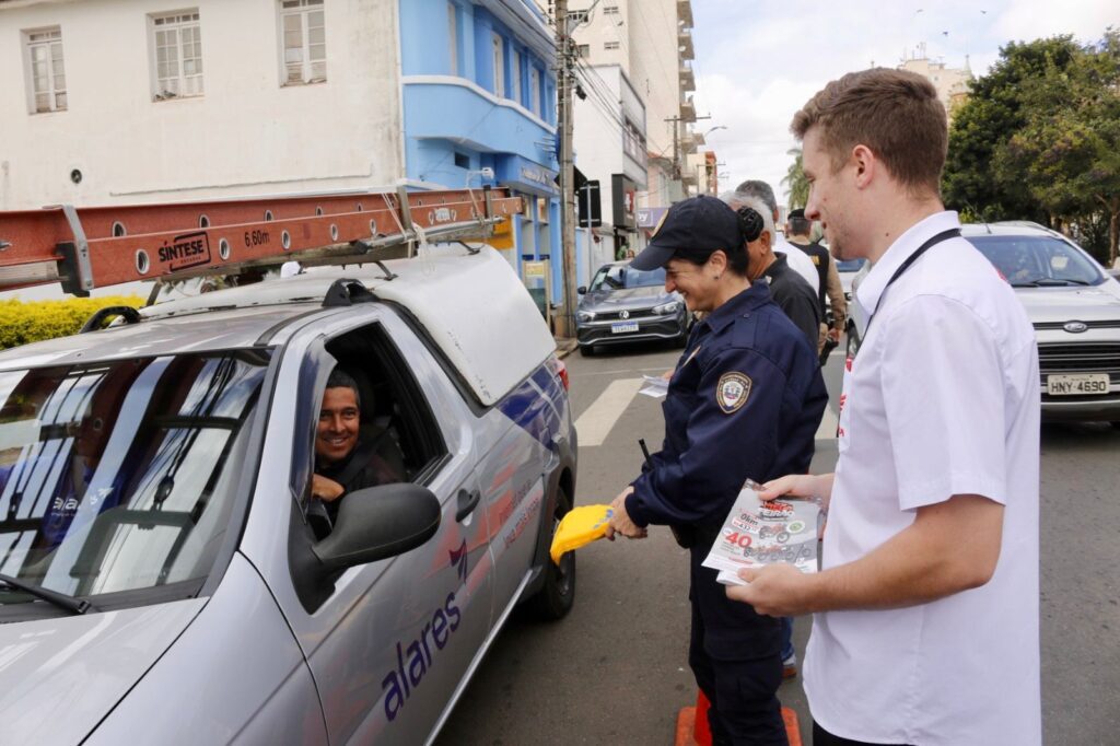 Nesta terça-feira (02), teve início em Alfenas a Campanha de Conscientização do Trânsito, alusiva ao Setembro – Mês de Conscientização do Trânsito. A abertura oficial aconteceu com a realização de uma Blitz Educativa na Praça Getúlio Vargas, em frente ao Banco do Brasil.