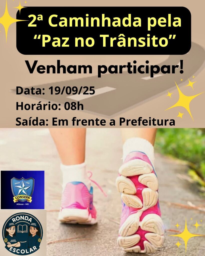 Ainda dentro da programação, Alfenas receberá no próximo dia 19 de setembro a 2ª Caminhada pela Paz no Trânsito.