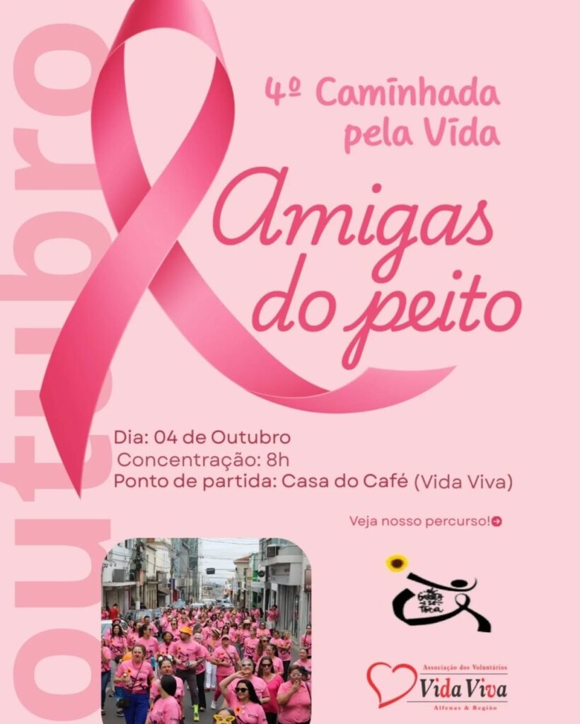 Com música, alegria e união, a 4ª Caminhada pela Vida – Amigas do Peito promete colorir as ruas de Alfenas em tons de rosa e esperança, lembrando a todos que a prevenção e o cuidado salvam vidas.