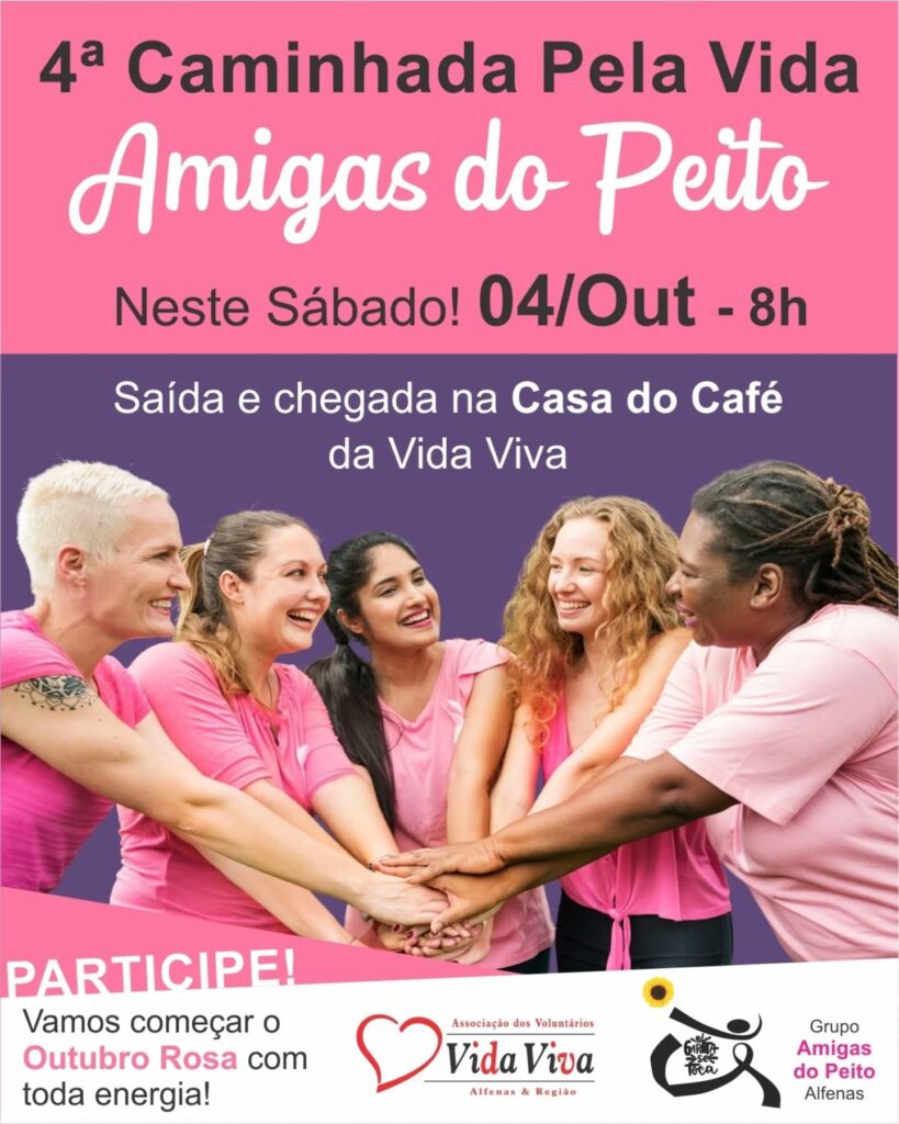 O mês de outubro chega trazendo consigo uma das campanhas mais importantes do calendário da saúde: o Outubro Rosa, movimento mundial de conscientização sobre a prevenção e o diagnóstico precoce do câncer de mama. Em Alfenas, a programação será marcada pela realização da 4ª Caminhada pela Vida – Amigas do Peito, que acontece no próximo sábado, dia 04 de outubro, a partir das 8h da manhã.