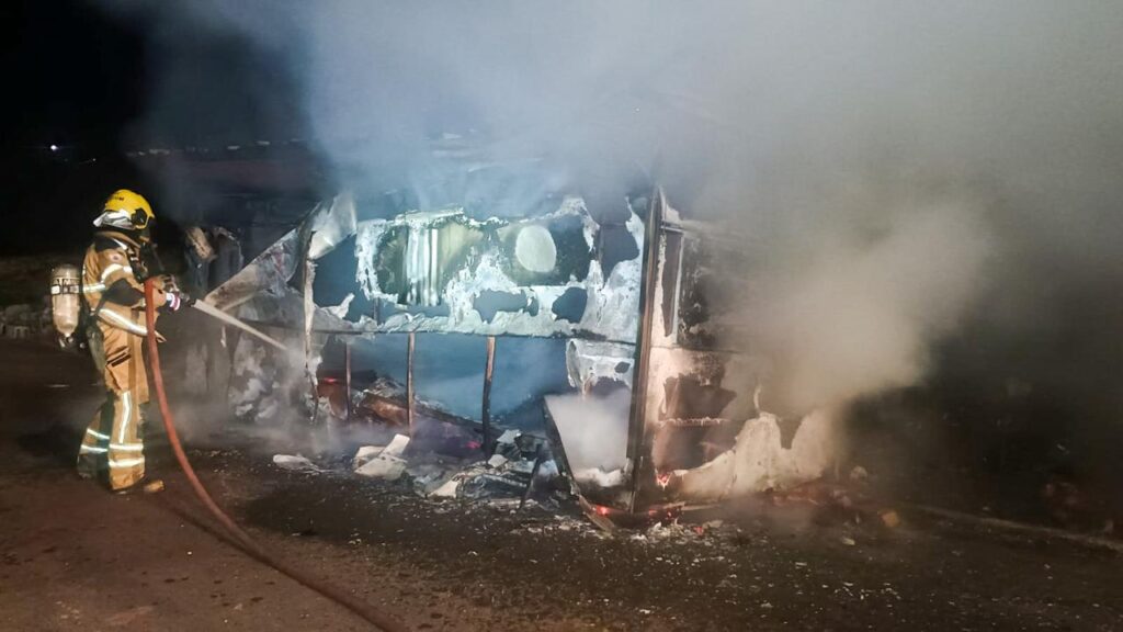 Ao chegarem ao local, os militares se depararam com o trailer já completamente tomado pelas chamas. O fogo apresentava alta intensidade e rápida propagação, comprometendo toda a estrutura do veículo, o que exigiu uma atuação imediata e estratégica da equipe para evitar maiores danos e riscos à vizinhança.