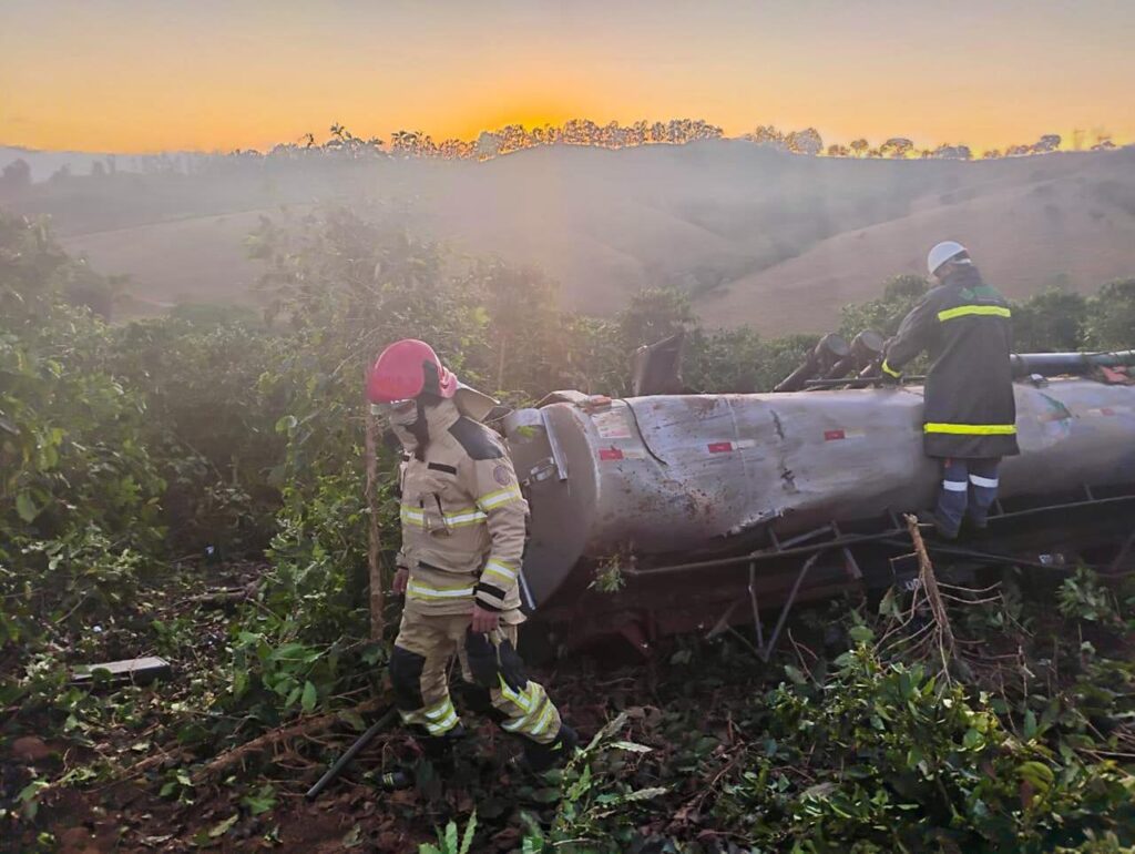 Na noite desta sexta-feira (26/09), por volta das 19h30, um caminhão-tanque carregado com cerca de 15 mil litros de combustível capotou na estrada rural que liga o município de Nova Resende ao distrito de Petúnia, no Sul de Minas.