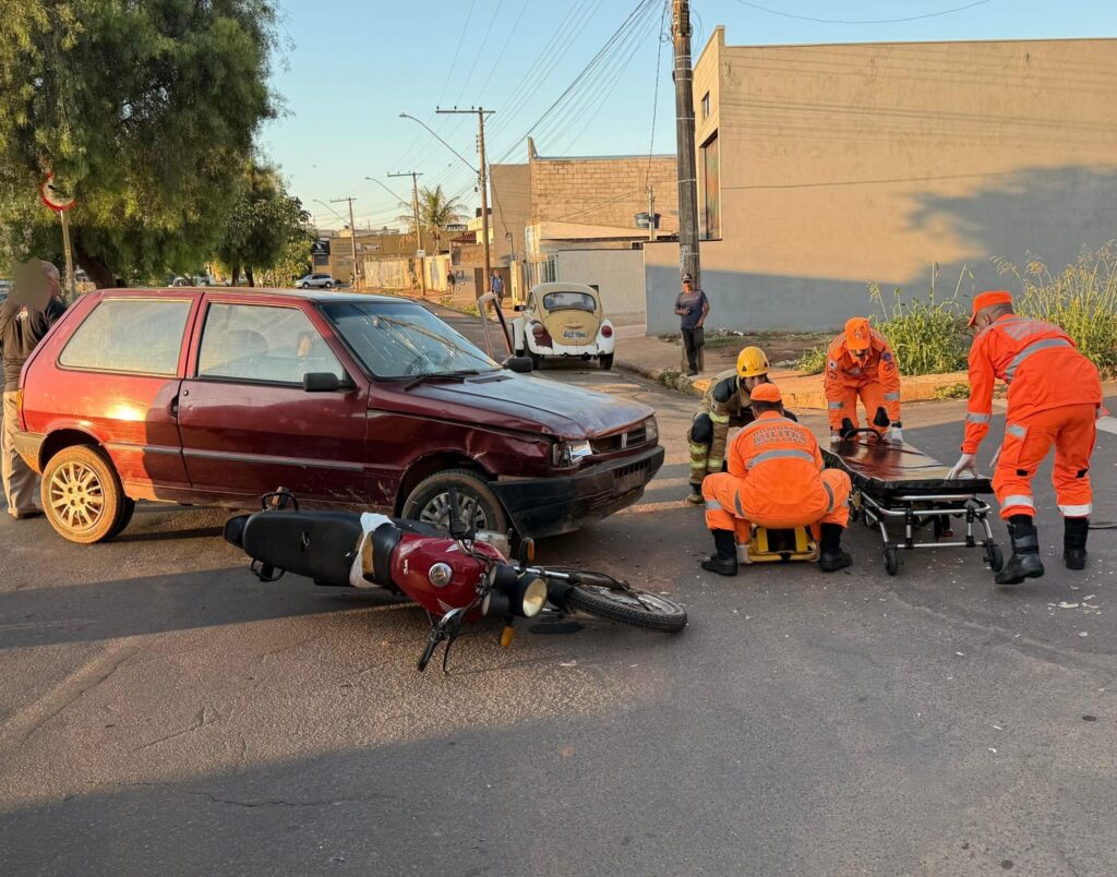 Após estabilização, o motociclista foi encaminhado ao Hospital Alzira Velano para avaliação médica complementar.