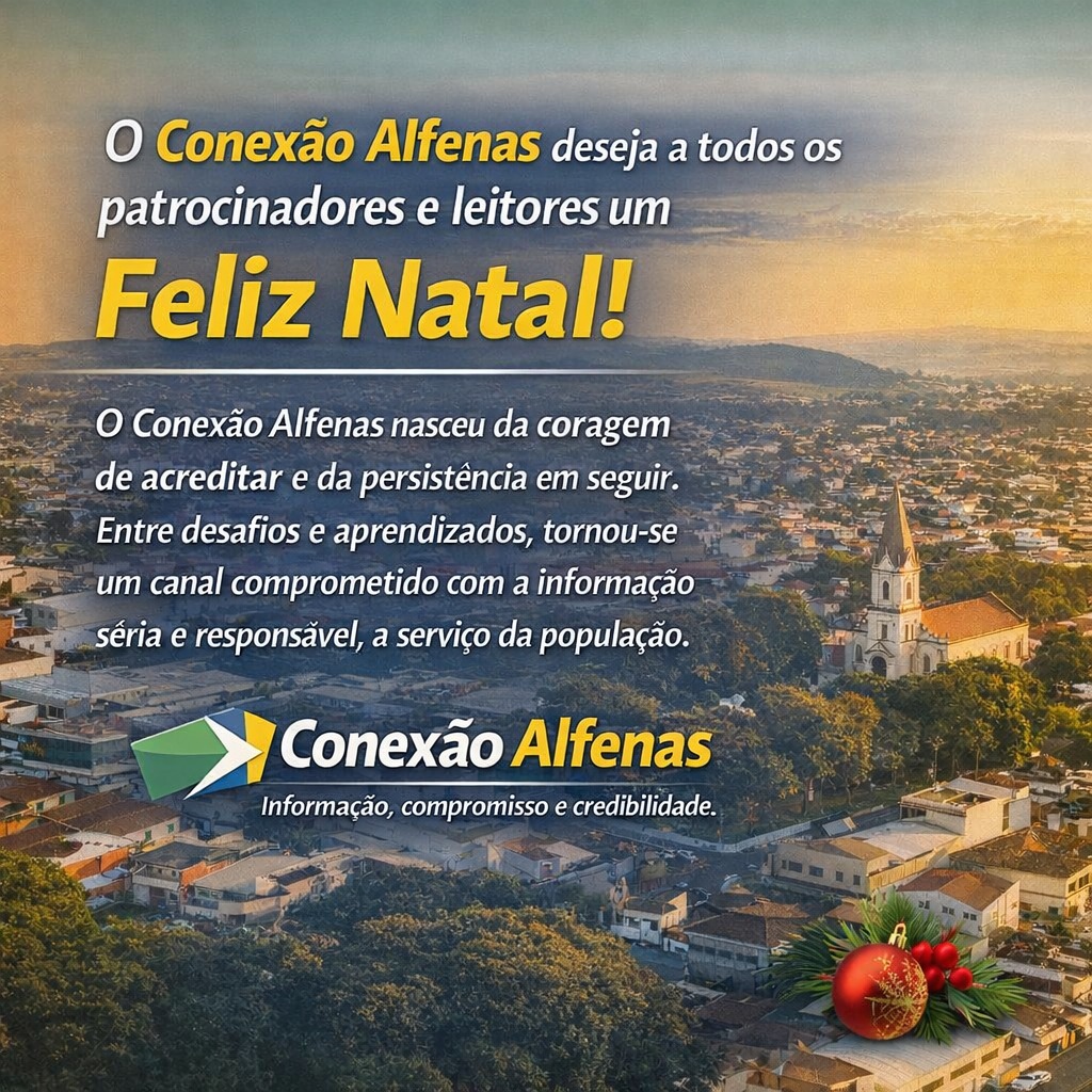 Que o Natal seja repleto de paz, saúde, harmonia e esperança em todos os lares, e que o novo ano traga novas oportunidades, conquistas e ainda mais união. O Conexão Alfenas seguirá firme em seu propósito de informar, conectar e servir a comunidade, sempre ao lado de quem acredita na força da informação.