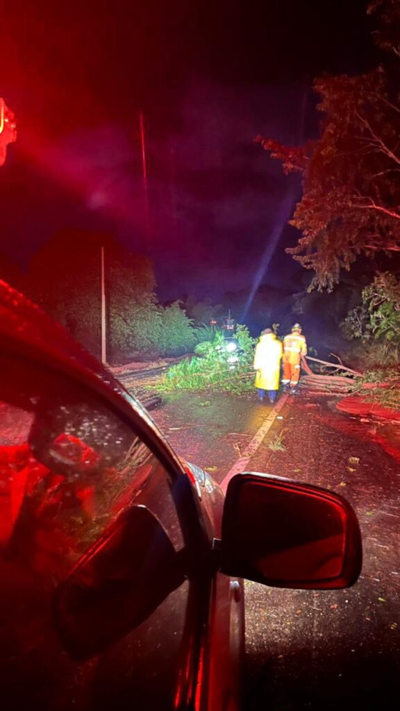 Na MG-179, foram registrados múltiplos pontos de interdição parcial e total da pista. Em duas situações mais críticas, árvores de grande porte tombaram sobre a rodovia, bloqueando significativamente o tráfego. As equipes do Corpo de Bombeiros atuaram com o uso de equipamentos específicos para o corte e a desobstrução da via, garantindo a liberação segura do trânsito e reduzindo o risco de novos acidentes.