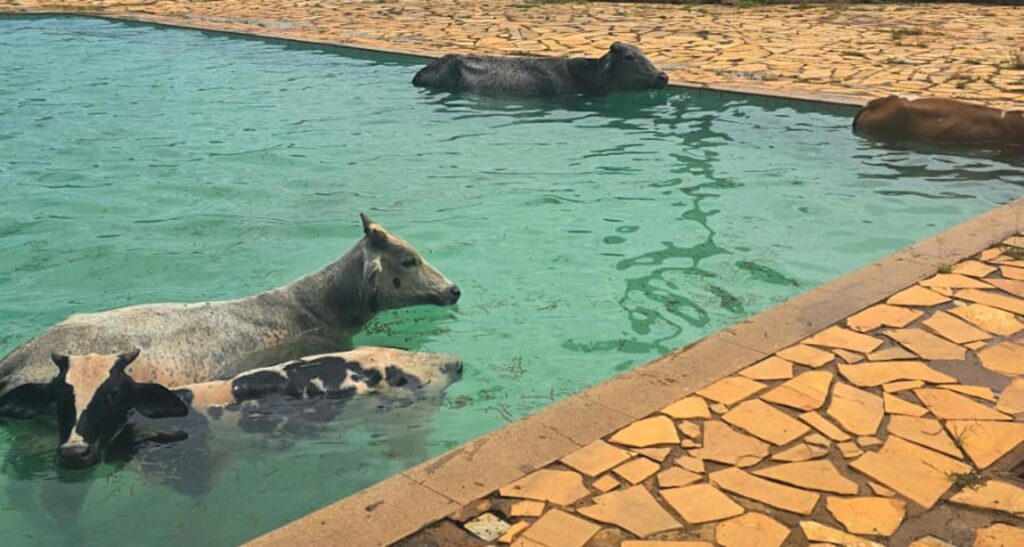 Alfenas (MG) – Na manhã desta sexta-feira (02/01), o Corpo de Bombeiros Militar de Alfenas foi acionado para atender a uma ocorrência inusitada envolvendo o resgate de quatro vacas que caíram dentro da piscina de um clube localizado às margens da Represa de Furnas, no município.