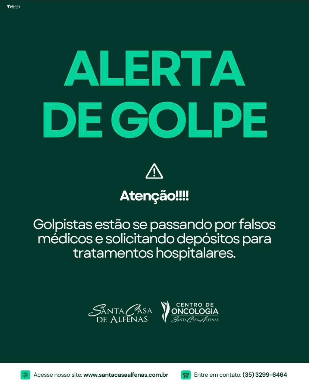 Desconfiado da situação, especialmente diante da solicitação de pagamento via contato telefônico, o repórter dirigiu-se imediatamente até a Santa Casa de Alfenas para averiguar a veracidade das informações. Ao chegar à unidade, foi informado de que se tratava de um golpe. A instituição reforçou que não realiza ligações solicitando pagamentos para exames, procedimentos ou qualquer outro tipo de serviço.