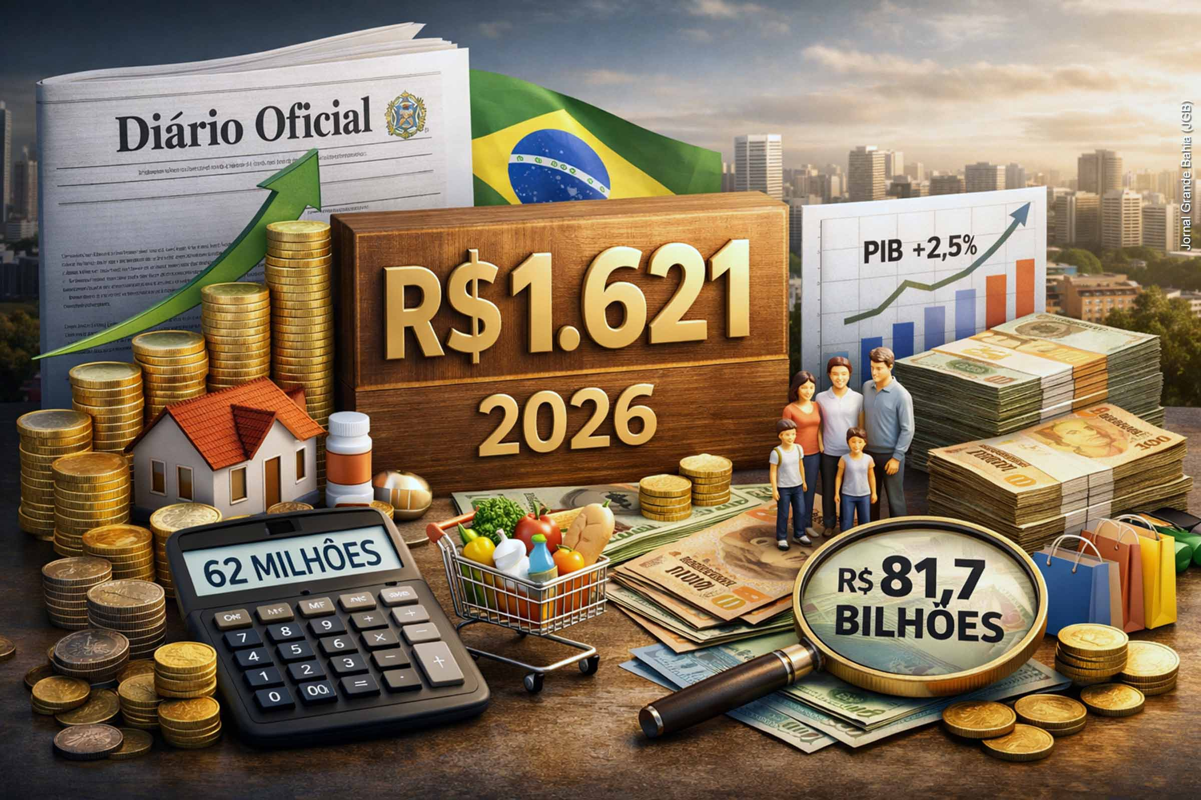 Brasil – O governo federal oficializou o reajuste do salário mínimo para R$ 1.621 a partir de 1º de janeiro de 2026, conforme decreto publicado no Diário Oficial da União. O valor representa um aumento nominal de cerca de 6,79% em relação ao piso vigente de R$ 1.518 em 2025, com impacto direto sobre os pagamentos que serão feitos a partir de fevereiro de 2026.