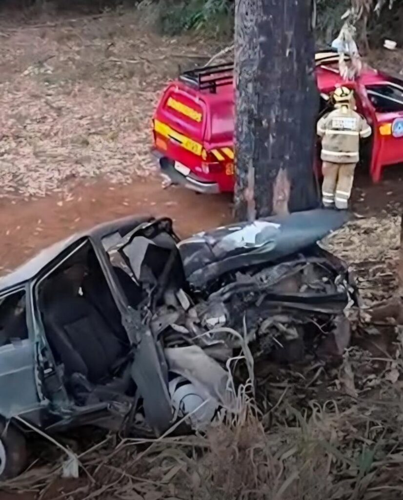 De acordo com informações do Corpo de Bombeiros, o veículo, que seguia sentido Alfenas, perdeu o controle, saiu da pista, caiu em um barranco e colidiu violentamente contra uma árvore. A força do impacto deixou o carro completamente destruído.