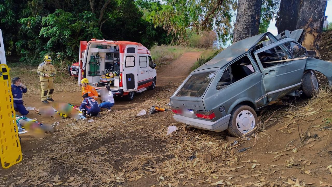 De acordo com informações do Corpo de Bombeiros, o veículo, que seguia sentido Alfenas, perdeu o controle, saiu da pista, caiu em um barranco e colidiu violentamente contra uma árvore. A força do impacto deixou o carro completamente destruído.