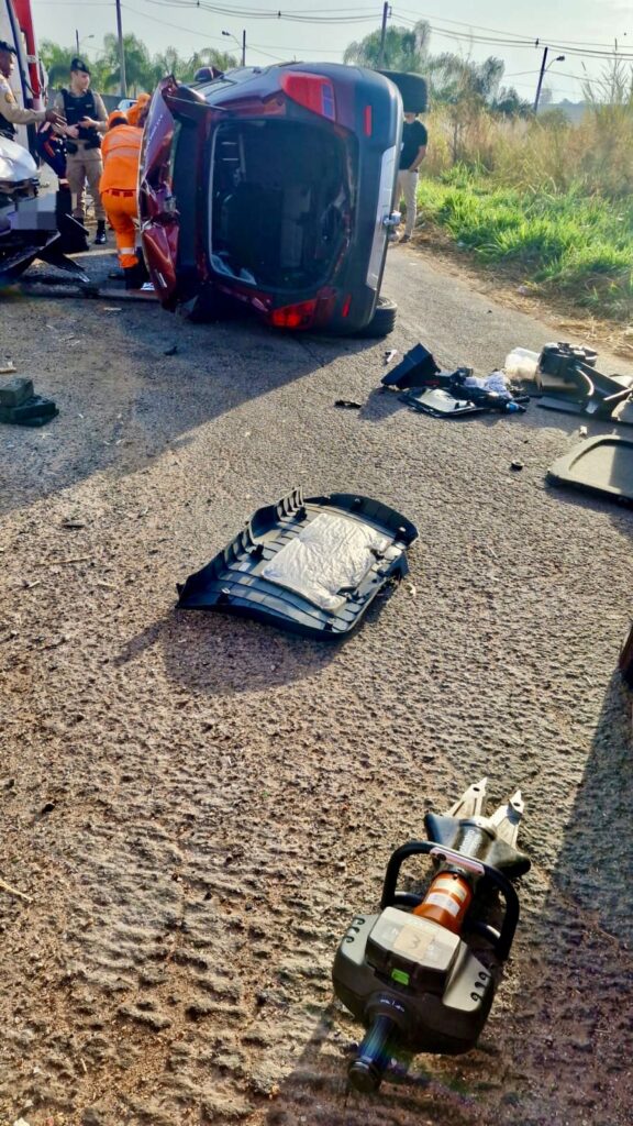 No Chevrolet Tracker, que seguia com três ocupantes, uma passageira foi retirada por terceiros antes da chegada das equipes de resgate e recusou atendimento médico. A motorista, de 56 anos, ficou presa às ferragens. Os bombeiros precisaram estabilizar o veículo e realizar a abertura do porta-malas, conseguindo retirá-la com segurança pelo teto solar. Ela foi encaminhada ao Hospital Alzira Velano com queixas de dores, mas sem lesões graves aparentes.