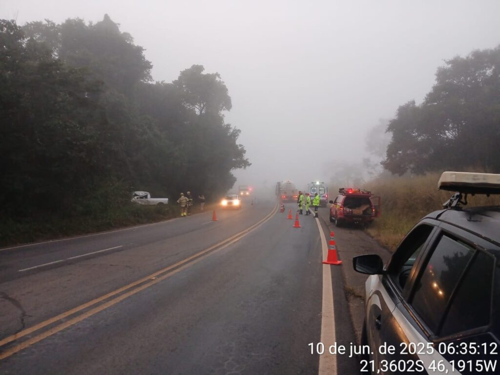 Um acidente fatal foi registrado nas primeiras horas desta terça-feira (10), por volta das 4h40, no km 144 da BR-491, no município de Areado, no Sul de Minas. A colisão, do tipo frontal-lateral, envolveu uma carreta e uma Volkswagen Saveiro, resultando na morte do condutor do veículo de passeio.