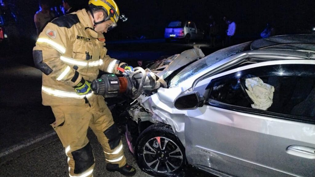 São João da Mata (MG) – Um grave acidente envolvendo três veículos foi registrado na noite deste sábado (11/10), por volta das 23h30, na rodovia MG-179, nas proximidades do trevo de São João da Mata. A colisão resultou em uma vítima fatal e deixou diversas pessoas feridas.