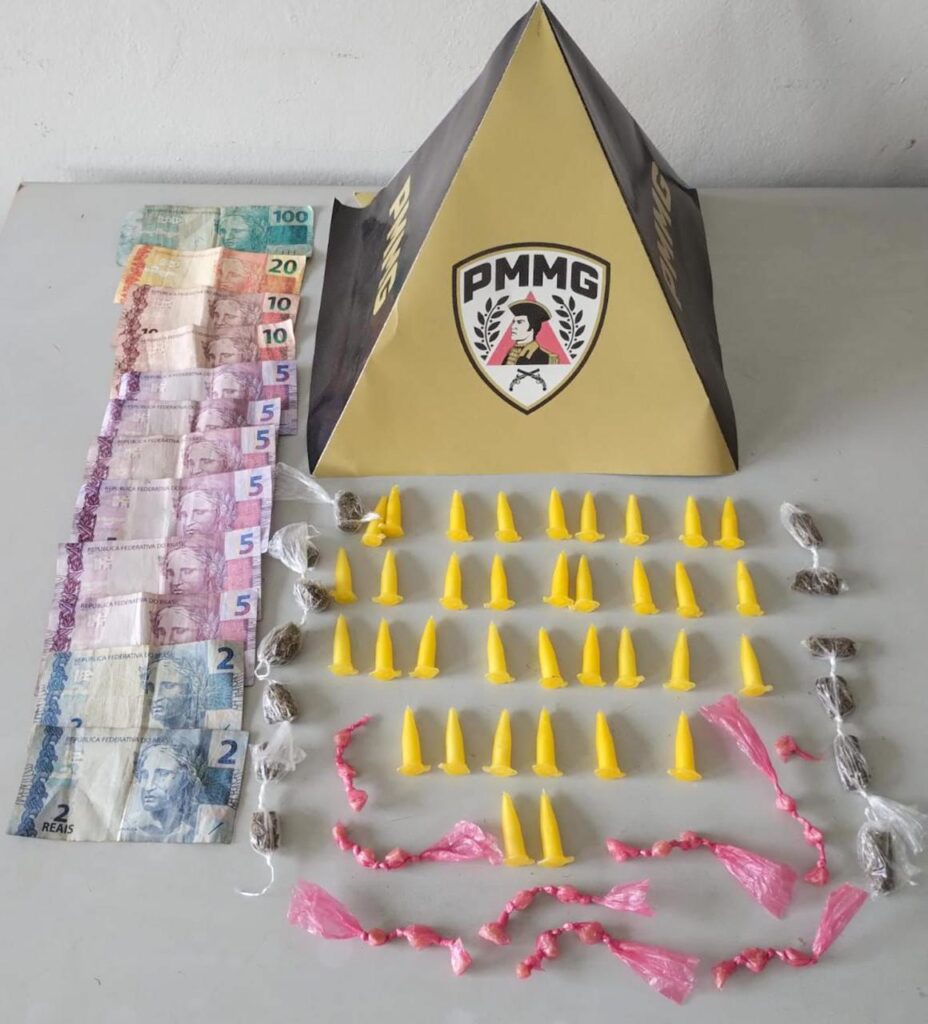 Foram apreendidos 35 pinos de substância análoga à cocaína, 25 pedras de crack, 13 buchas de maconha, além da quantia de R$ 174,00 em dinheiro, valor que, segundo a polícia, pode ser proveniente da venda de drogas. Todo o material estava devidamente embalado e pronto para comercialização, reforçando os indícios da prática do tráfico.