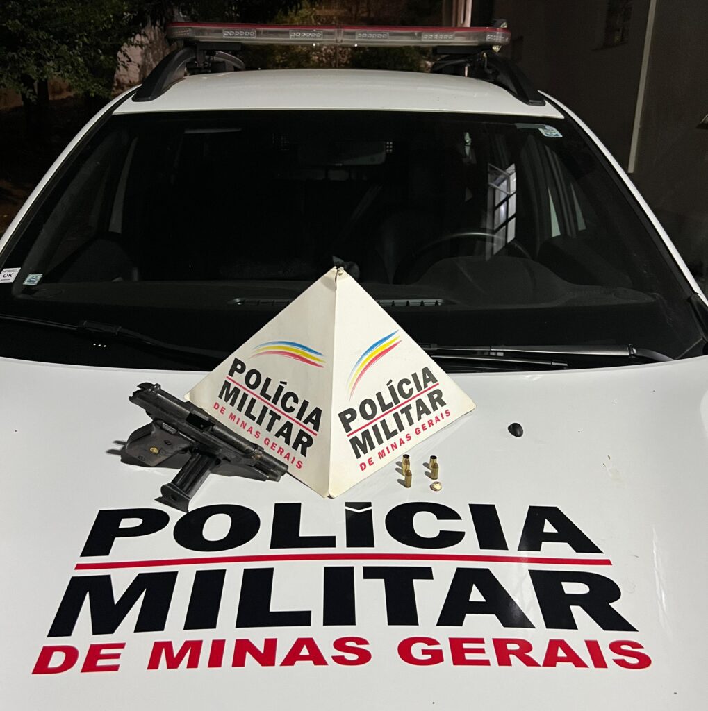 Diante da gravidade da denúncia, guarnições da PM se deslocaram imediatamente até o endereço informado. No local, os policiais conseguiram abordar e prender o suspeito. Durante buscas na residência, foram localizadas uma arma de fogo e munições, que foram apreendidas pelas autoridades.