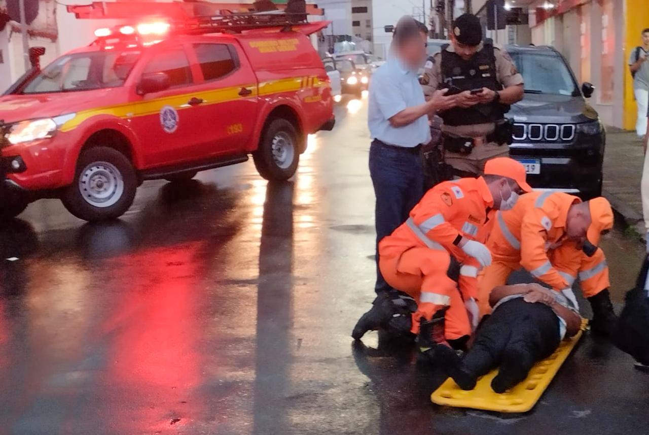 De acordo com informações dos bombeiros, a vítima, uma mulher de 75 anos, atravessava a avenida quando foi atingida por um motociclista. Com o impacto, ela caiu na via e ficou ferida, provocando imediata preocupação de pedestres e motoristas que passavam pelo local.
