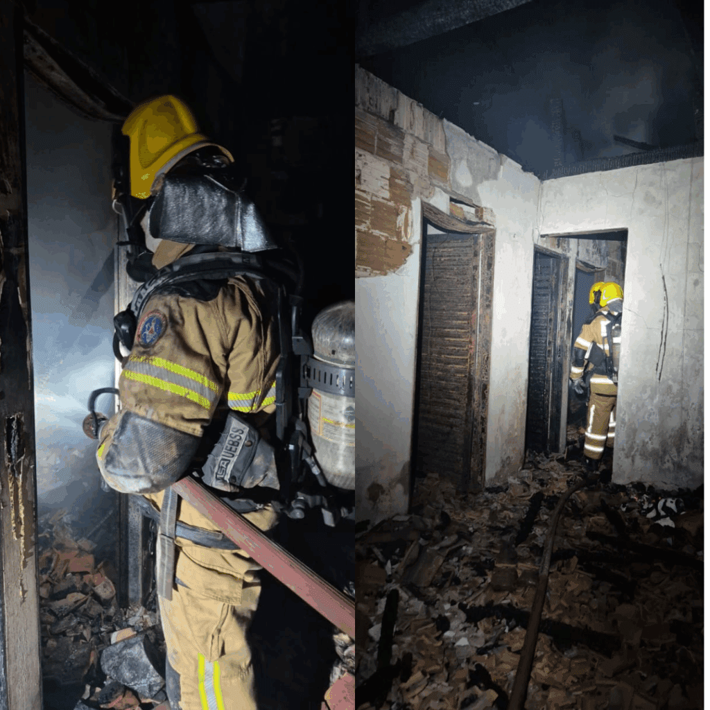 Apesar dos esforços, a sala, os quartos e a cozinha da residência foram completamente destruídos pelo fogo. Após a extinção das chamas, os bombeiros realizaram o trabalho de rescaldo, procedimento essencial para eliminar possíveis focos remanescentes e evitar reignição.