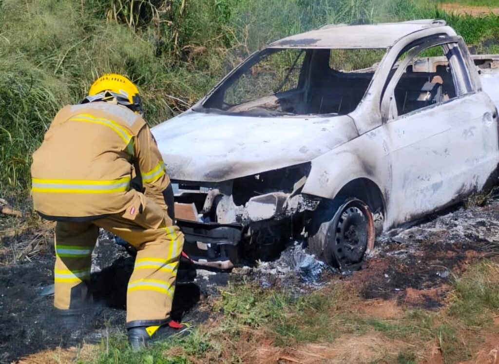 Após a extinção do fogo, os bombeiros executaram o trabalho de rescaldo, procedimento essencial para eliminar possíveis focos remanescentes e reduzir o risco de reignição. O veículo ficou significativamente danificado.