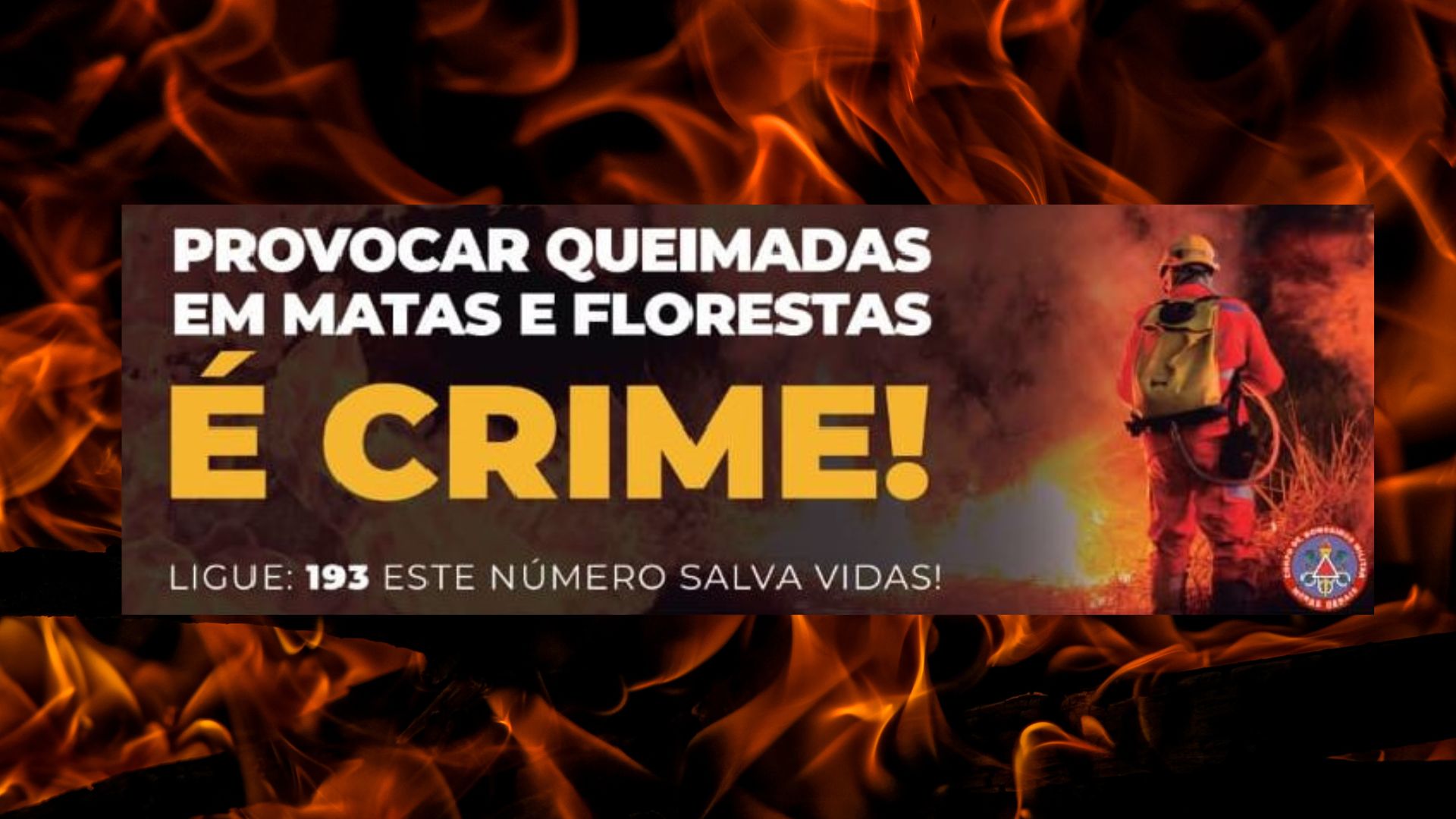 Ao presenciar queimadas, acione imediatamente o Corpo de Bombeiros pelo número 193 ou a Polícia Militar Ambiental. Lembre-se: queimar é crime, e prevenir é responsabilidade de todos.