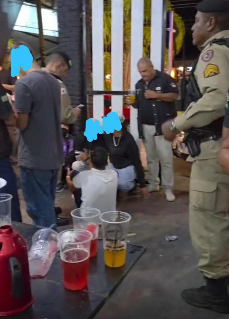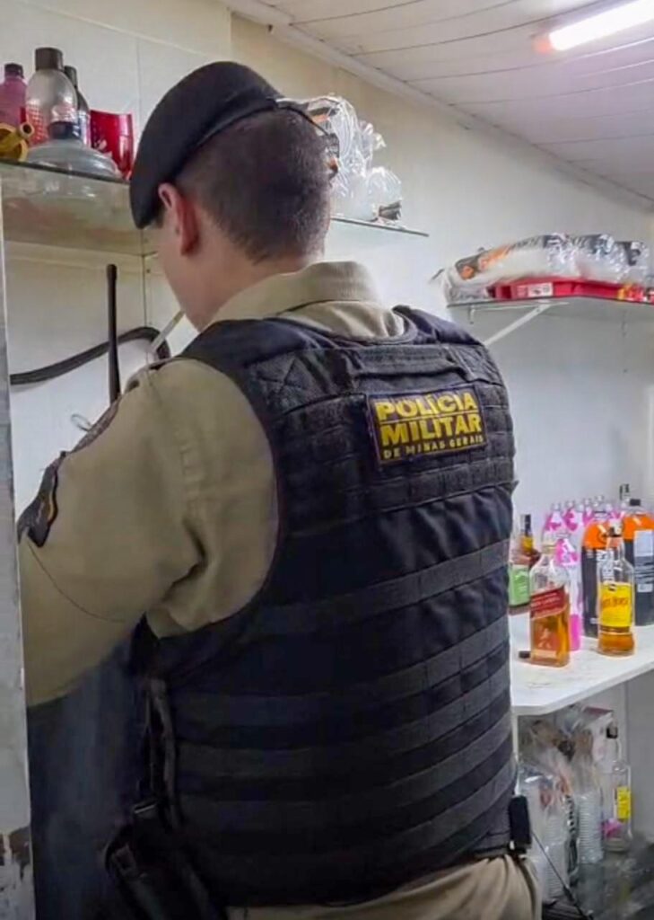 Durante as buscas, os militares localizaram vidros contendo substância com características de “loló”, além de um bastão de madeira envolto em fio de arame farpado, objeto que poderia ser utilizado como arma. Questionado, o proprietário apresentou um alvará de funcionamento válido até 00h00, não constando autorização para utilização de som mecânico. Apesar disso, havia no local uma caixa de som de grande potência, que foi apreendida pela Polícia Militar.