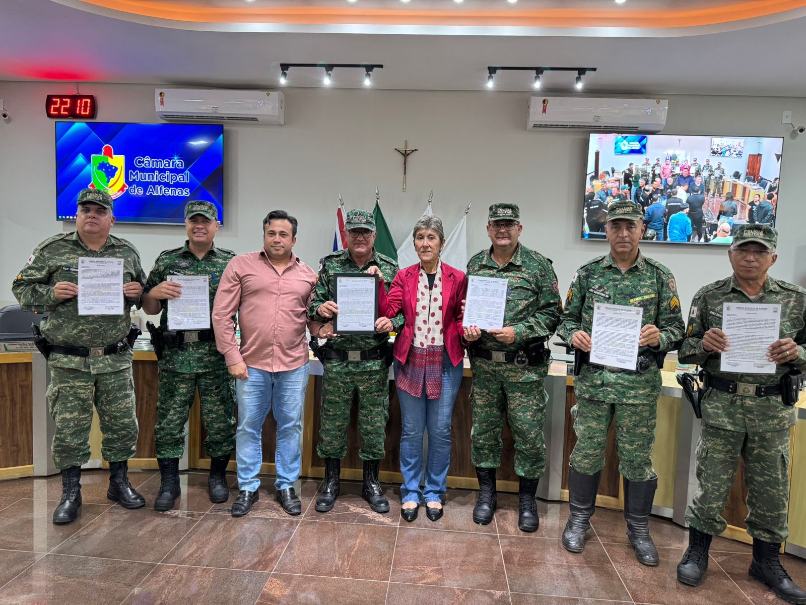 Na noite desta segunda-feira, 07 de julho de 2025, os militares do 2º Grupamento da Polícia Militar de Meio Ambiente de Alfenas foram homenageados em sessão solene na Câmara Municipal. A cerimônia marcou a entrega de uma Moção de Congratulações e Aplausos, concedida como reconhecimento pelos relevantes serviços prestados à sociedade Alfenense.