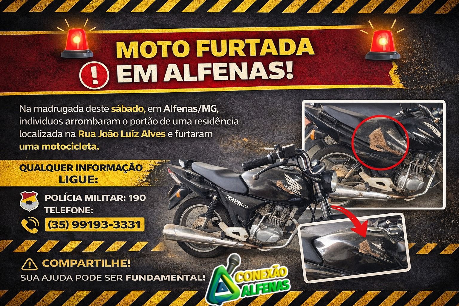 ⚠️ Compartilhe! Sua ajuda pode ser fundamental para a recuperação da moto.