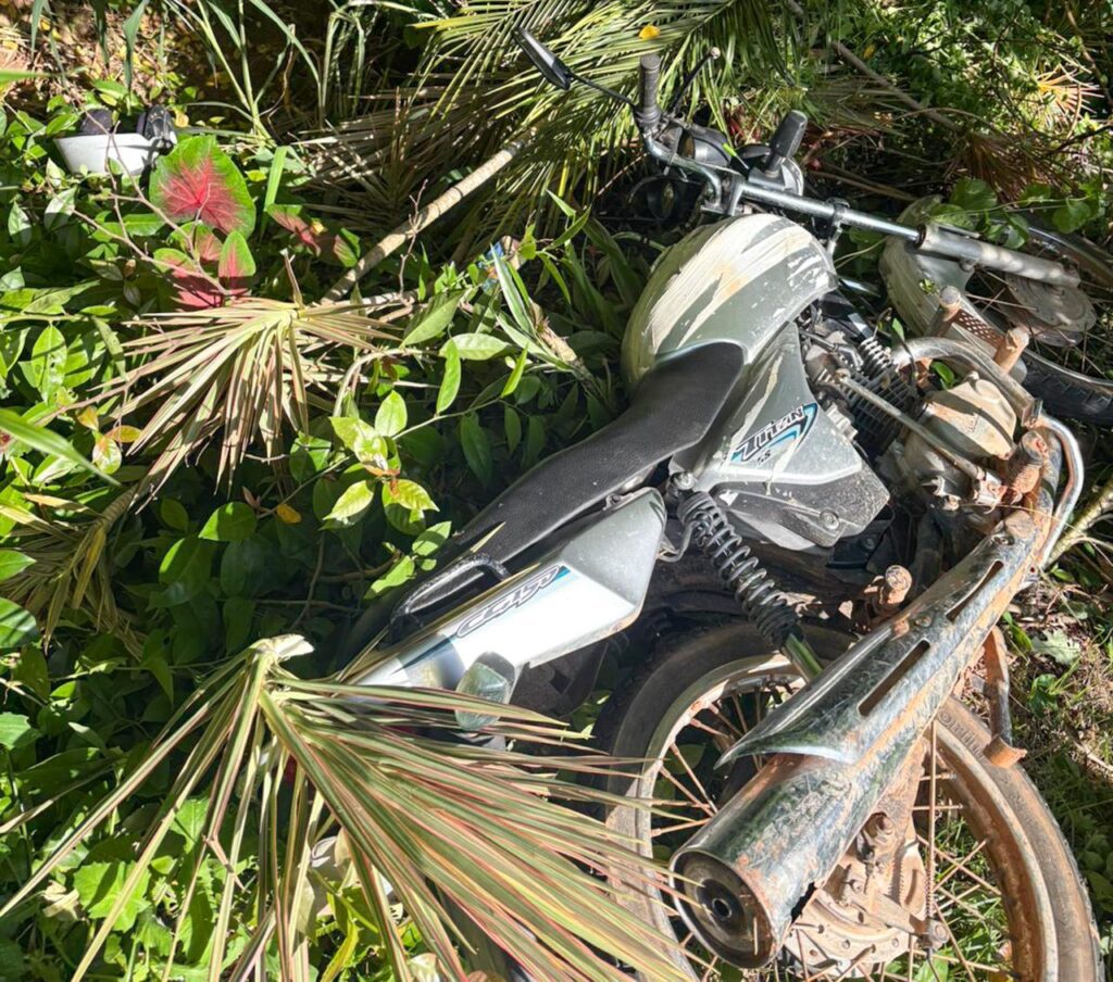 A ação teve início após o recebimento de uma denúncia anônima, informando que um veículo estaria oculto em uma área isolada da região. Diante das informações, a equipe policial deslocou-se imediatamente até o ponto indicado com o objetivo de averiguar a procedência da motocicleta.