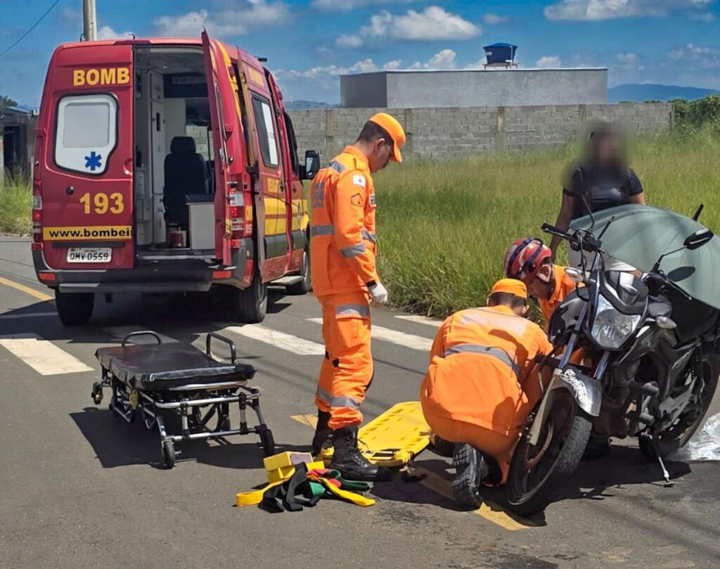 Rapidamente acionadas, as equipes de resgate do Corpo de Bombeiros prestaram os primeiros atendimentos à vítima ainda no local do acidente. Durante a avaliação inicial, os militares constataram que o motociclista apresentava escoriações nos joelhos e relatava fortes dores na região lombar, indicando possível comprometimento na coluna.