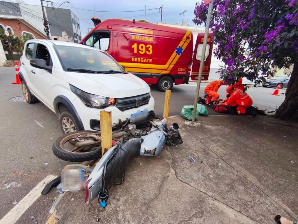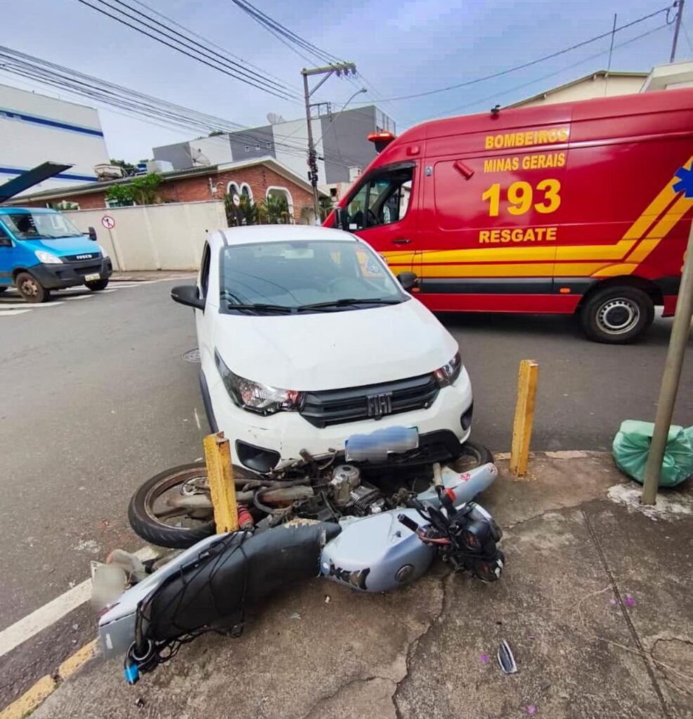 Alfenas (MG) – Um acidente de trânsito envolvendo uma motocicleta e um automóvel deixou um homem ferido na manhã desta segunda-feira (09), no centro da cidade de Alfenas, no Sul de Minas. A ocorrência foi registrada no cruzamento das ruas Afonso Pena e Leão de Faria, uma região de intenso fluxo de veículos.