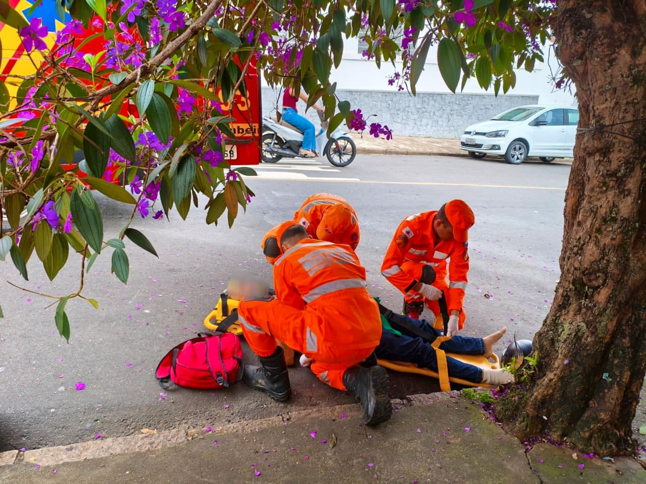 Durante a avaliação realizada pela equipe de resgate, a vítima apresentava escoriações no braço esquerdo e no pé esquerdo, além de relatar dores na região das costas. Após receber os primeiros atendimentos pré-hospitalares, o motociclista foi imobilizado e estabilizado na unidade de resgate.
