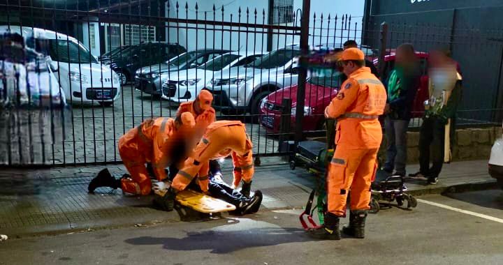 O Corpo de Bombeiros foi acionado e chegou ao local em poucos minutos. A vítima, um homem que conduzia a motocicleta, apresentava uma lesão no joelho e diversas escoriações pelo corpo. Consciente e orientado, ele recebeu os primeiros socorros ainda na via e, em seguida, foi encaminhado ao Hospital Alzira Velano para avaliação médica mais detalhada.