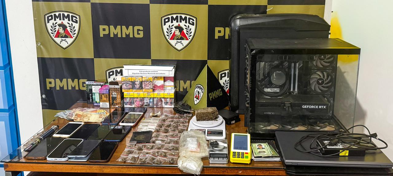 Uma operação da Polícia Militar de Minas Gerais (PMMG) resultou na prisão de quatro pessoas, três homens e uma mulher, J. L. P. S., de 37 anos, P. N. A., de 31 anos, Y. O. E., de 18 e a mulher V. C. L. da S., de 25 anos, nesta quarta-feira (25/02), no município de Carmo do Rio Claro, no sul de MG. O grupo é investigado por envolvimento com tráfico de drogas, associação para o tráfico e receptação de produtos ilícitos.