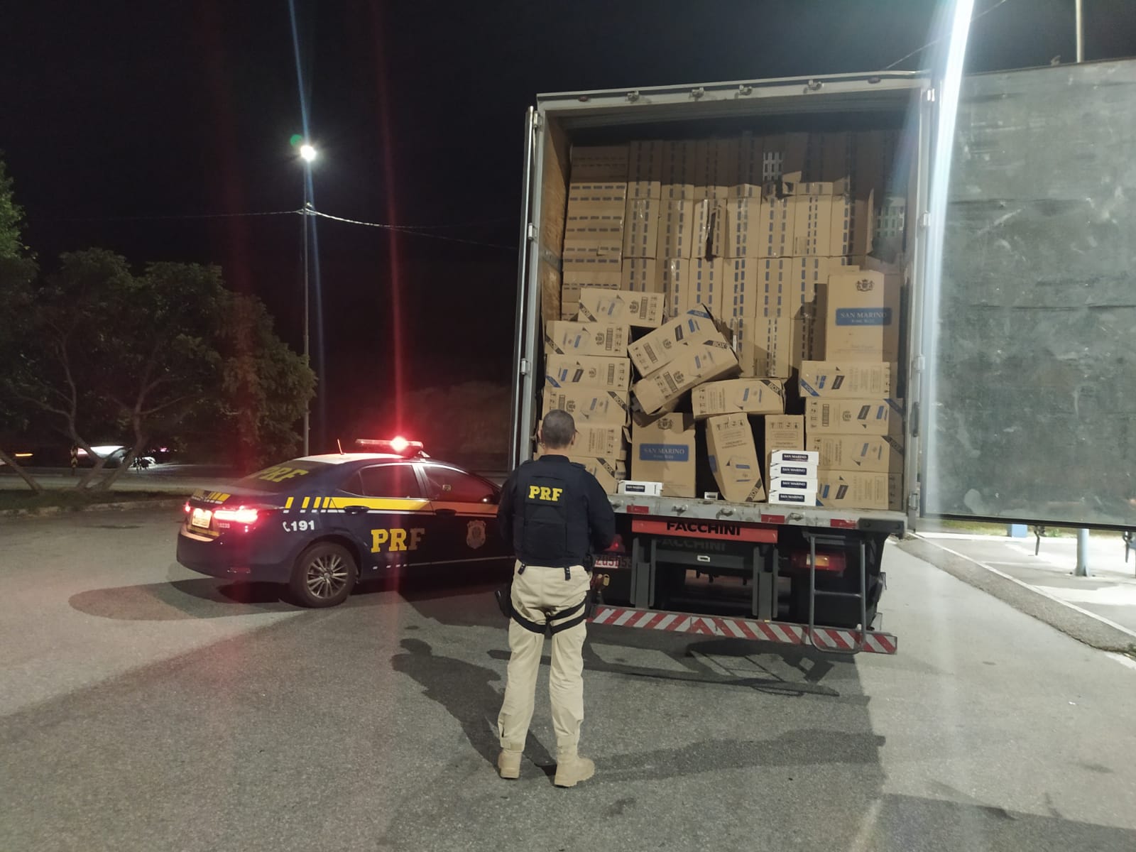 No interior do baú, os agentes encontraram 150 caixas de cigarros, totalizando cerca de 75 mil maços, todos de origem estrangeira (Paraguai), configurando crime de contrabando, previsto pela legislação brasileira.