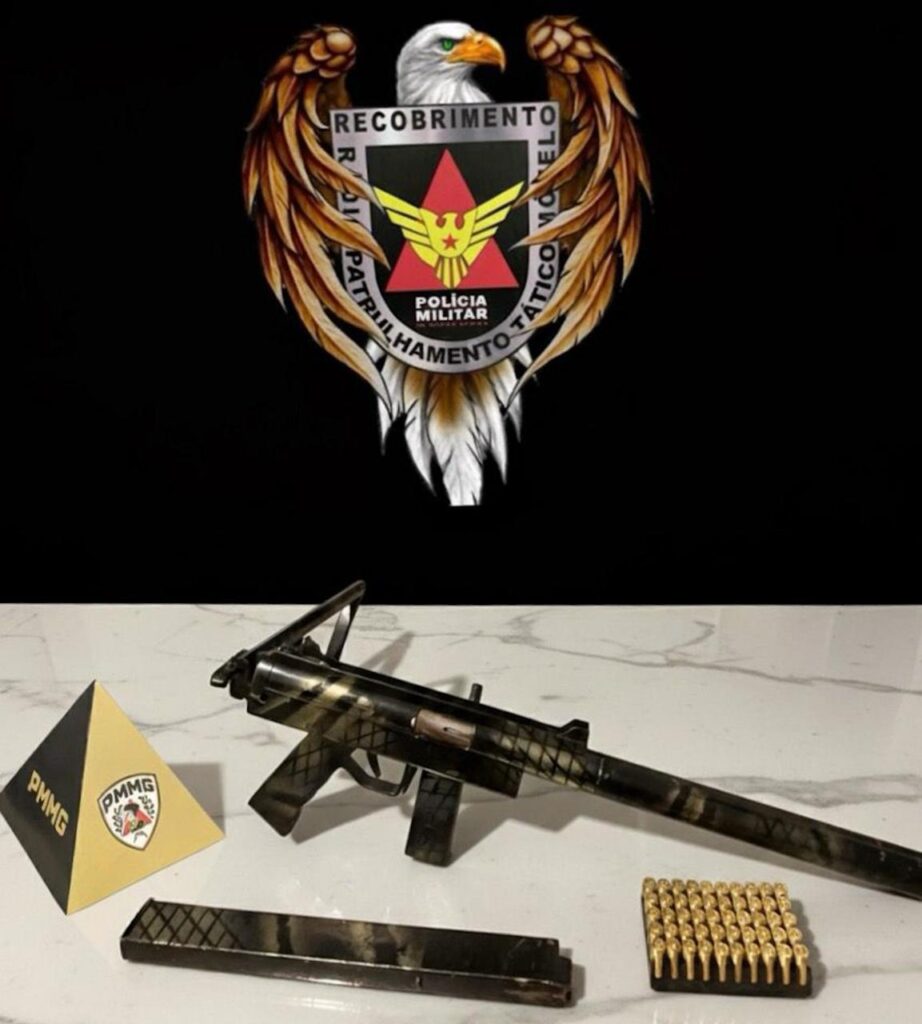 Alfenas (MG) – Na noite deste domingo (19/10), uma ação da Polícia Militar resultou na apreensão de uma submetralhadora de uso restrito e diversos materiais bélicos no bairro Pinheirinho, em Alfenas. A operação foi desencadeada durante diligências em busca de um foragido da Justiça.