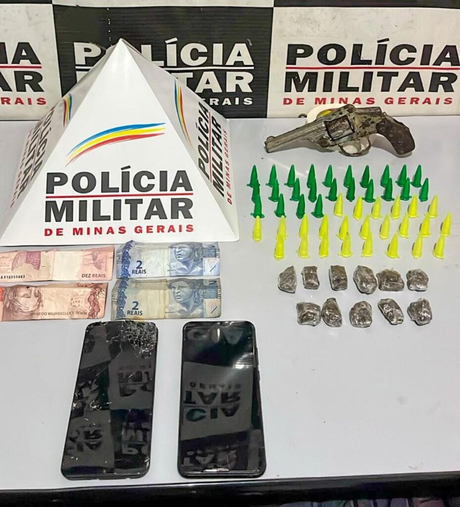 Durante as buscas no imóvel e nas áreas próximas, os militares localizaram uma significativa quantidade de materiais ilícitos, incluindo 48 pinos de substância análoga à cocaína, 11 buchas de maconha, um revólver calibre .32 de cor prata, uma balança de precisão, quantia em dinheiro e aparelhos celulares, possivelmente utilizados na prática criminosa.