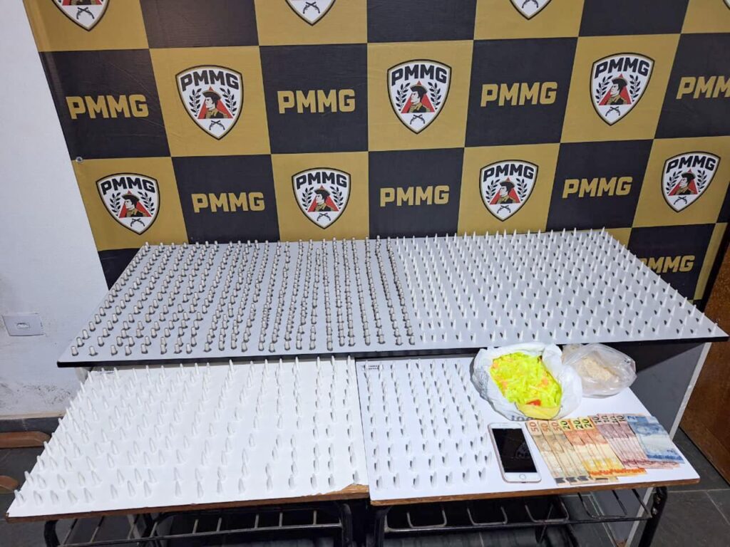 Na abordagem, os militares localizaram com o autor 1.040 pinos contendo substância análoga à cocaína, além de R$ 252,00 em dinheiro, valor proveniente, segundo a polícia, da atividade criminosa. Também foram apreendidos diversos pinos vazios, utilizados para embalar o entorpecente.