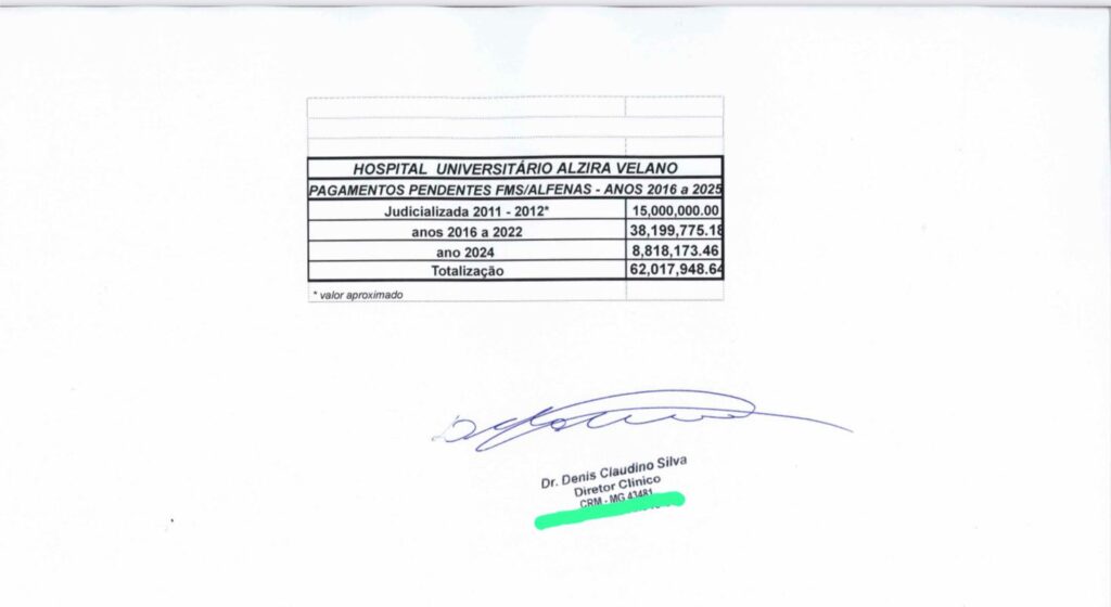 Segundo informações apuradas pelo Conexão Alfenas, a dívida atualizada referente ao ano de 2024 soma R$ 8.818.173,46. A redução do valor deve-se a alguns repasses feitos recentemente pela Prefeitura ao hospital.