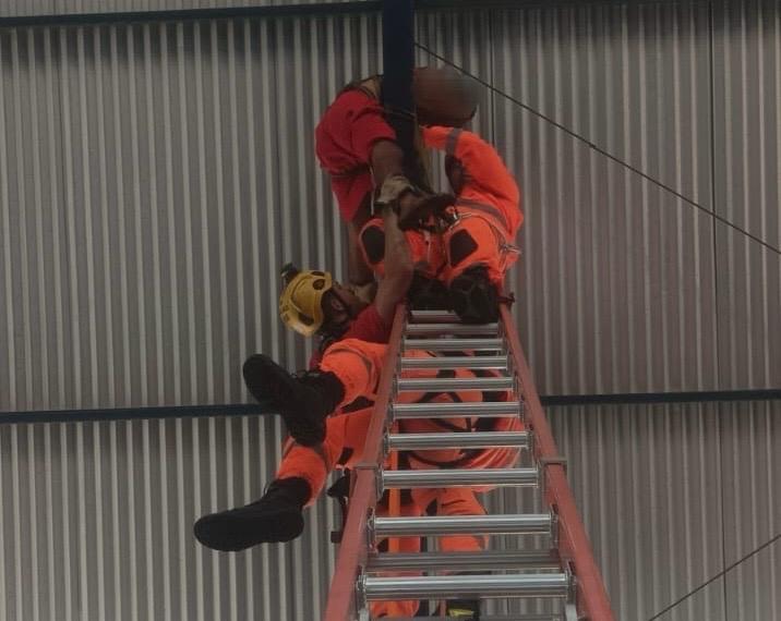 Diante da situação, a equipe de Salvamento do Corpo de Bombeiros foi acionada e, ao chegar ao local, realizou a avaliação técnica do cenário. Utilizando equipamentos adequados e técnicas específicas de salvamento em altura, os militares conseguiram acessar a vítima e efetuar a retirada de forma segura, evitando riscos maiores.