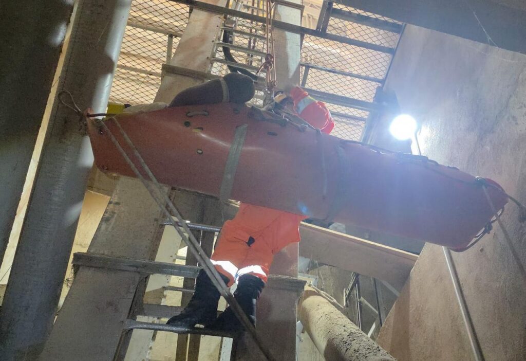 De acordo com os bombeiros, o acionamento ocorreu por volta das 08h, exigindo uma rápida resposta das guarnições de resgate e salvamento. No local, os militares se depararam com a vítima no interior de um fosso de elevador de grãos, em situação crítica, demandando técnicas especializadas para acesso e retirada com segurança.