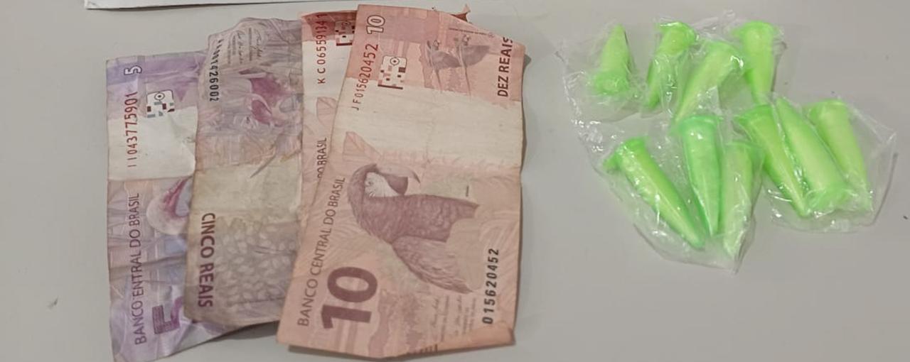 Durante a abordagem e buscas pessoais, foram localizados com os autores diversos pinos contendo substância análoga à cocaína, além da quantia de R$ 30,00 em dinheiro, valor que, segundo a Polícia Militar, é proveniente do comércio ilegal de drogas.