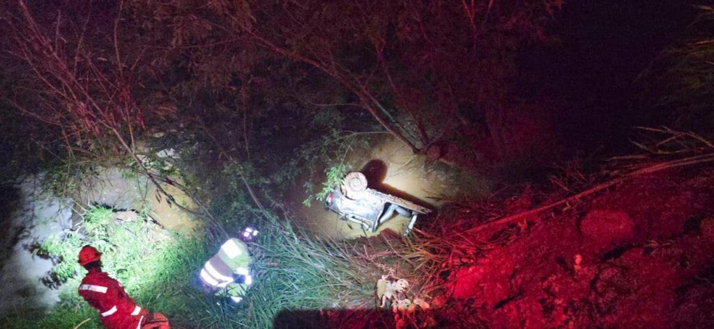 As equipes realizaram uma varredura minuciosa no interior do automóvel e também em toda a área adjacente ao curso d’água, considerando a possibilidade de o condutor ter sido arremessado para fora do veículo ou arrastado pela correnteza. Após buscas detalhadas, nenhuma vítima foi localizada no local.