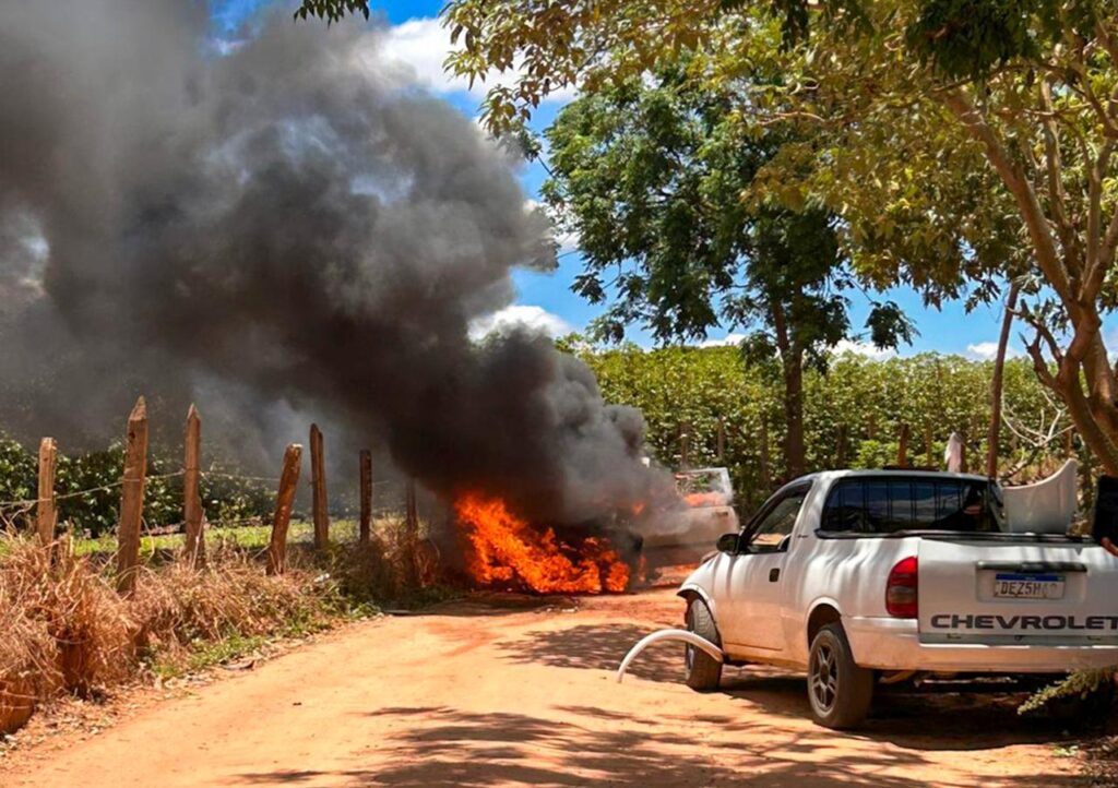 Alfenas (MG) – Um grave acidente seguido de incêndio mobilizou o Corpo de Bombeiros na manhã desta segunda-feira (10/11), por volta das 11h40, em uma estrada vicinal na região da Chácara Pontal das Esmeraldas, zona rural do município.